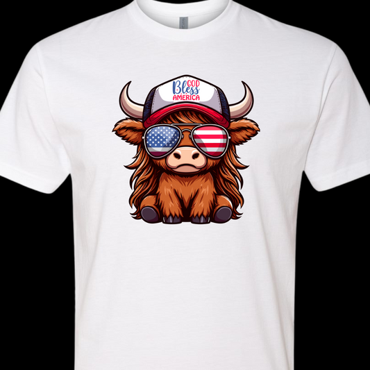 God Bless America Highland Cow T-Shirt